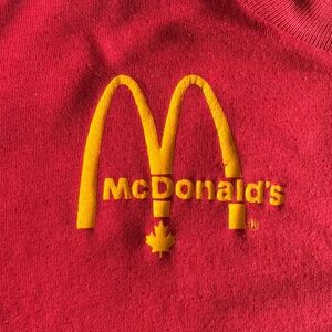 Authentic Vintage McDonald's "Super Crew" Staff T-Shirt 🍟 from original employee that worked at McDonald's in the late 1980s/early 90s. Perfect for collectors and retro fashion enthusiasts, or to wear for halloween! No stains or scents, but fabric has some piling and one pin hole on front left side of the chest. Two similar sized hole on back between the shoulders.