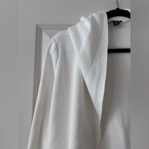 Elegant ivory cardigan with a hood. Ideal for layering.