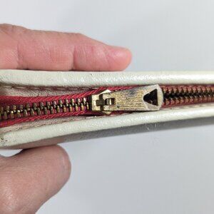 A vintage white leather notebook sleeve / correspondence folder by Cooper-Weeks, made in Canada. Dates ca 1960s. The inside is a beautiful bright red, a great contrast against the white. On one wide, there is a ID / Calendar slot as well as space to store a small address book and stamps. The middle holds a pen and the opposite side has a band to hold a notepad in place. Great to use for studies or work, or why not make it a sweet gift to a budding writer?