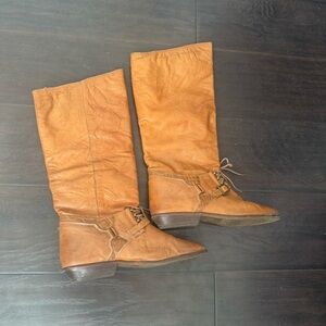 Vintage leather knee boots western cottagecore riding style romantic prairie 8.5