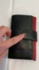Vintage leather trifold wallet with many card slots, money slots, interior and exterior zipped compartments, snap closure, ID slots, black and red