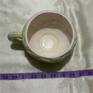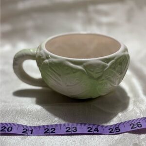 Elegant mug with embossed leaf design. Features green and white hues. See photos for signs of wear.