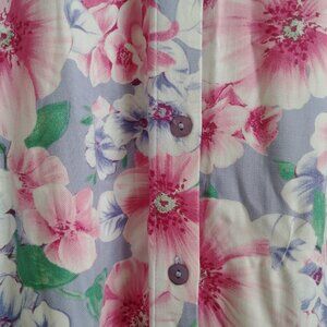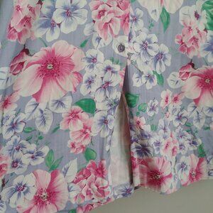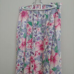 Vintage long button down midi maxi skirt purple pink and green floral Medium