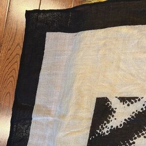 🤍🖤Stunning elegant chic timeless white black style Vintage luxury canvas geo printed square scarf missing content tags Approx measurements detailed vintage preloved tear holes peeling photographed same day shipping from smoke free home