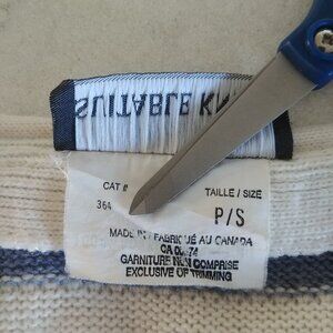 Very good used condition. Some of the photos have a slight yellowish tinge as they were taken in late afternoon sunlight - the sweater is in fact blue and white/off white as shown in the cover photo. Please see photos for measurements and tags. Smoke-free home.