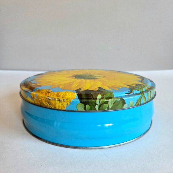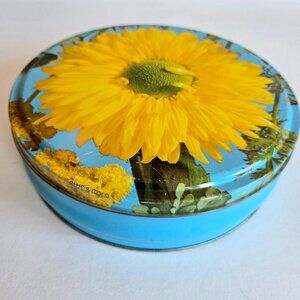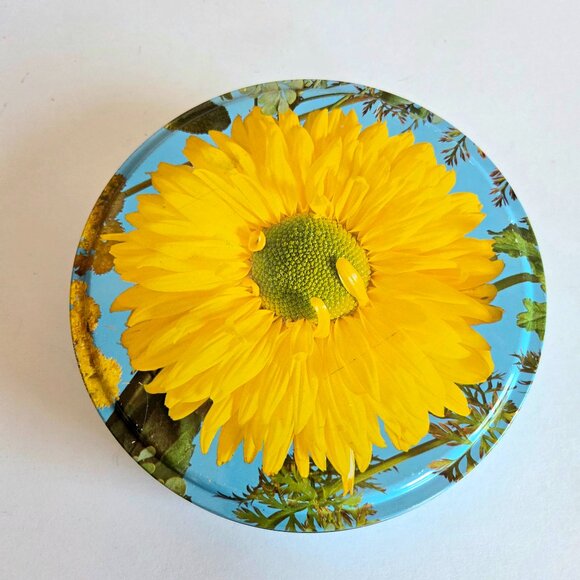 Vintage made in England round tin box with sunflower.