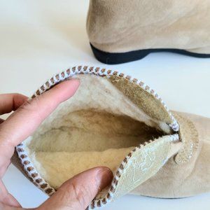 Beautiful in excellent condition vintage made in France wool lined suede ankle shoes/boots. Size 38 that would be US 6.5 (?). Super comfortable and warm.