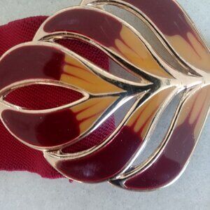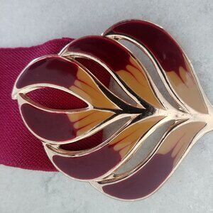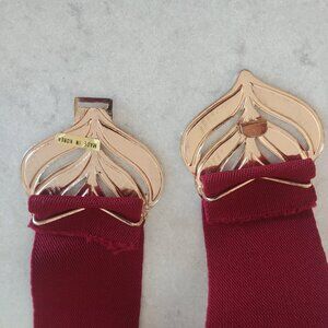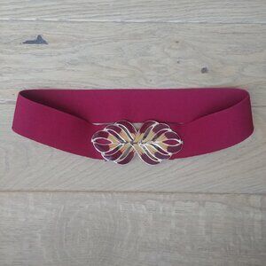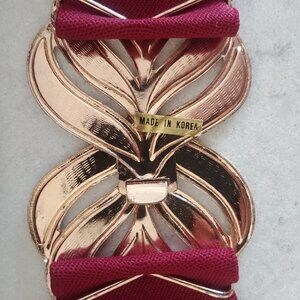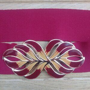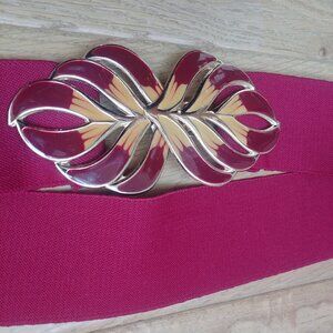 Very good used condition, such a unique piece. I have shown the belt under varying lights, but to my eye it is more of a deep red or burgundy than a pink. The clasp is gorgeous and shows slight wear (see second to last photo for closeup). Please see photos for measurements. Items come from a smoke-free home.