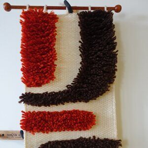 Vintage mcm latch hook rug groovy 70s mid century modern wall hanging