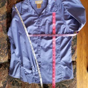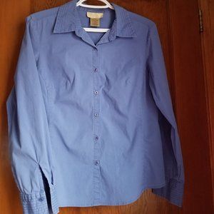 Vintage, med blue cotton, L, S, M, close fit blouse, tuck in/out, Cotton Ginny