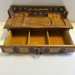 Vintage men's jewelry/valet wooden box with one lined drawer with horseshoe pull