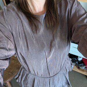 Vintage metallic-like purple mini dress with flattering hip skirt