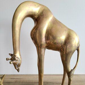Vintage midcentury solid brass giraffes figurines/statures. Mother and baby giraffes.