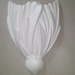 Vintage mid-century cream SylvaC wall hanging/pocket vase. Hyacinth leaf design. Made in Engliand.