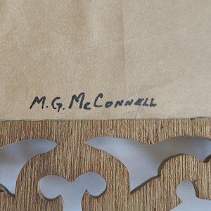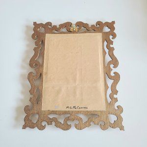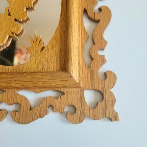 10.5'' x 8'.5''. Mirror is 6'' x 4''. Good condition.
