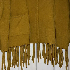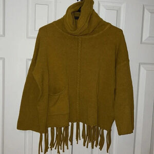 Vintage mustard yellow turtle neck sweater poncho with Tassels hem Sz M