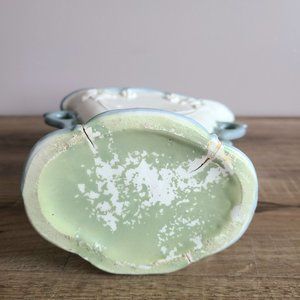 Vintage narrow ceramic vase with 3D exotic bird and handles. 8'' tall, 7'' wide. There are few repaired cracks at the bottom on the back part. Looks like they fixed well. Please see picture. Also some lost color at the bird head.
