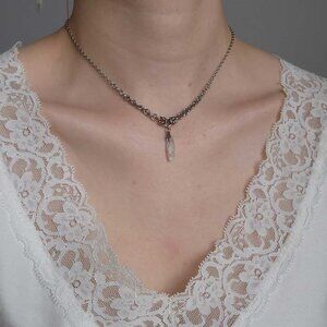 Vintage natural clear quartz silver chainmail necklace with a small silver chain