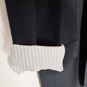 Originally made for men, this jacket works beautifully as a menswear boyfriend blazer for women. The arm lining is pin-striped, making this versatile jacket perfect for a casual rolled-up sleeve look.