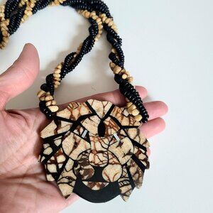 Vintage necklace with large lion head design. Retro jewelry 1970s-1980s. Animal lovers gift. Oversized jewelry. 13.5''long top to bottom. Good condition.