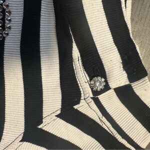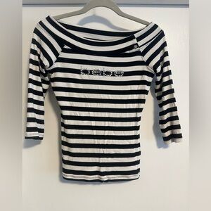 Bebe 3/4 length sleeve striped shirt. Excellent condition. Size S/M. One of the buttons on the shoulder is missing but all the rhinestones for the front are intact.