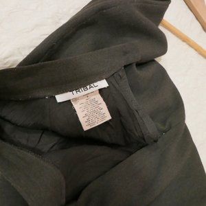 Tribal pencil skirt from the 90's, in dark olive green/grey colour. Poly/Rayon blend with rayon lining, made in Canada. small slit at back, zipper with button at wait closure at centre back. 🌼Check out my closet and bundle 2 🌼for $16!