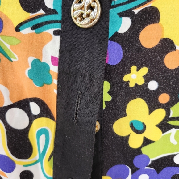 Vintage colourful buttondown. Looks cool as a dress with a chunky belt. Tiny stain at the back (shown in photo above)
