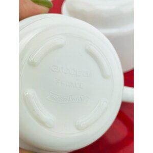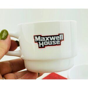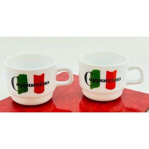 Pair of vintage Arcopal cups, price is for one pair. Made in France by Arcopal, milk glass, restaurant cups, showing the Italian flag and advertising Maxwell House Cappuccino.