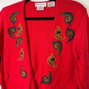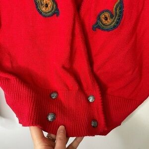 In good vintage condition except marks on the back. 100% cotton. Paisley knit embroidery insert. Double side buttons at the bottom. Measure lay flat: shoulder 16'' bust 20'' length 24'' sleeve length 25,5''.
