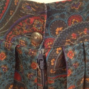 Paisley pattern in shades of dark green, red, purple, and orange.