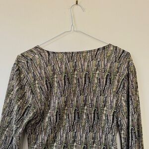 Vintage patterned blouse with wooden ring detail | In excellent condition, no visible flaws | Size unmarked, would best fit sizes S-M depending on desired fit