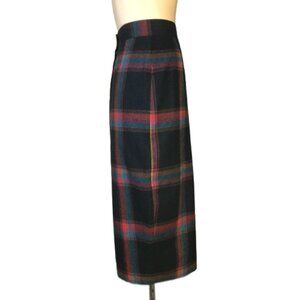 Vintage pencil fitted wool blend tartan plaid high waist midi skirt