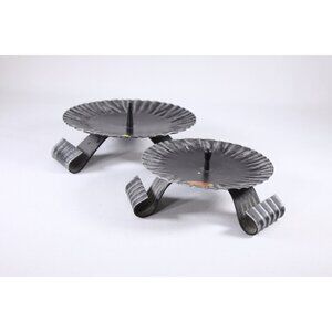 Vintage pillar candle holder set of 2, Western Germany metal candlesticks,