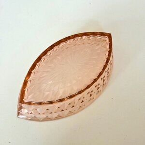 Vintage pink Depression glass Windsor Jeanette boat bowl.