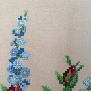 Excellent vintage condition, with a minor discoloration near the blue flowers (see photo #3); hardly visible—I’ve looked at this tapestry a thousand time and only just noticed it when taking photos close up.