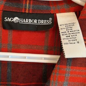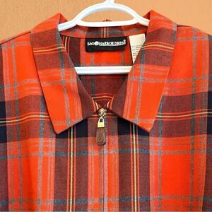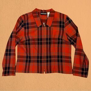 Gorgeous vintage plaid jacket from Sag Harbour. Deep orange plaid, collared & zipper. Fitted style, about waist length. Unlined so it’s nice and thin and breathable, great for layering. Size 16, true to size. Excellent condition.