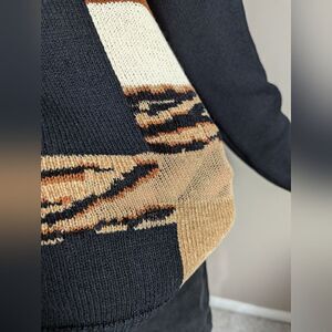Vintage polo sweater with animal print. Alfred dinner sweater tiger print sz s