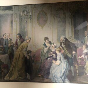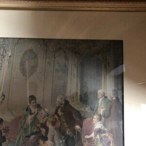 It is a vintage print by Otto Wilhelm Eduard Erdmann depicting a scene from the 18th or 19th Century. It is framed in a gold-tone frame.