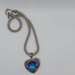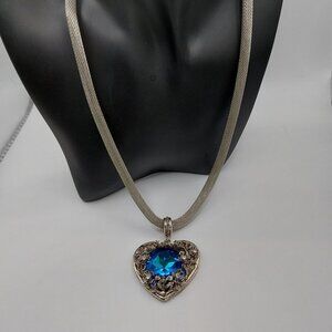 Gorgeous Blue Crystal Puffed Heart Pendant Necklace with Blue Crystal Stone centre that can be changed. 56 grams. 22" long.