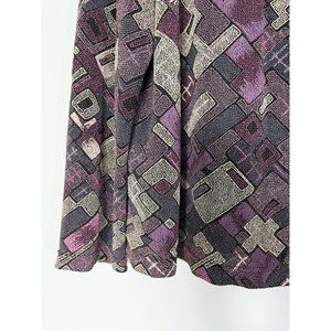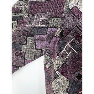 Vintage geometric print sparkly cardigan with shades of purple and beige. Piece has a lot of stretch to it.