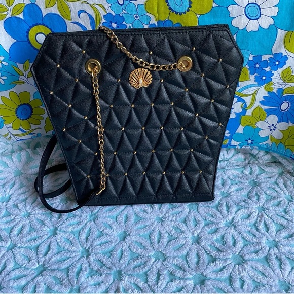 Vintage purse Victorian coffin style purse quilted black leather goth dark