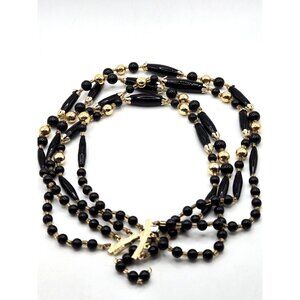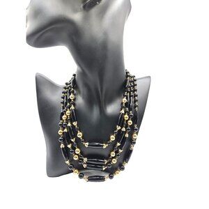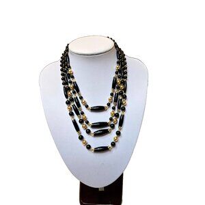 Vintage quadruple strand Black Agate and Gold beaded Made in Japan Necklace 1940