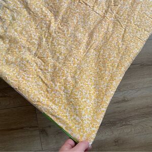 It’s bright and cheerful , the otherside is a beautiful orange Paisley print it’s a lot brighter than the photo shows .