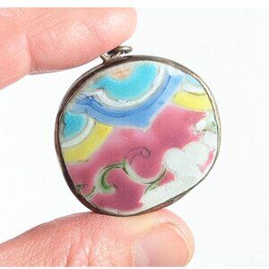 Vintage rainbow glazed clouds pottery shard pendant, Repurposed pottery piece