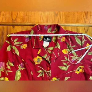 Step into retro glamour with this vintage red dress in size 17/18. The bold floral design adds a touch of timeless charm, making it a statement piece for any occasion. Embrace unique style and make a lasting impression with this vintage fashion find.