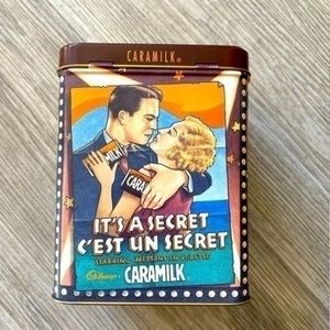 Vintage retro 1970’s CARAMILK collectible tin can with hinged lid. EEUC.