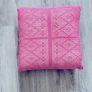 Vintage retro 2 tone pink crochet knit decorative pillow. 16”x16”.