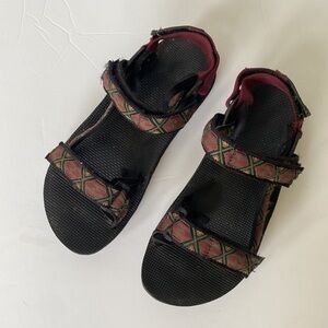 Vintage retro Merrell men's size 9 tribal print fabric velcro sandals