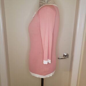 Dusty Rose Pink Knit Wide Neck Half Sleeve Top with White Contrast Trim & cute Bow detail, by MAC & JAC.