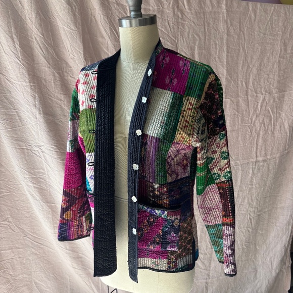 Vintage reversible patchwork quilted satin jacket. Size M-L